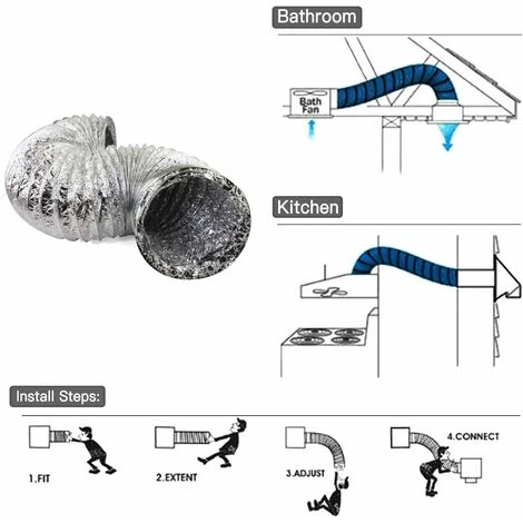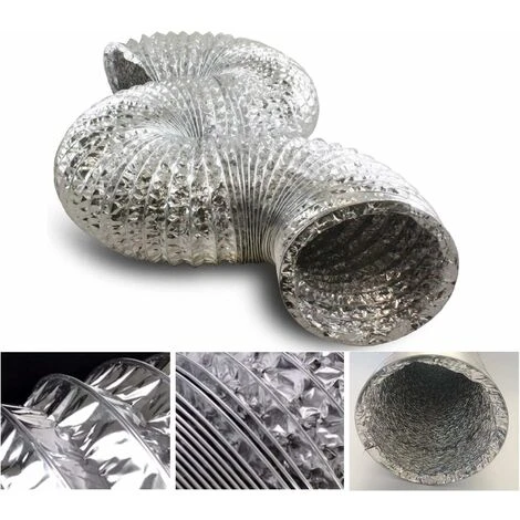 Color as shown Size: 13.2 x 10.2 x 9.6 cm Weight: 220 g Package Contents: 1 x flexible drain hose. Diameter: 150mm; maximum length: 2 m. Double-layer aluminum drain hose with steel spiral. Temperature range: -30°C to 150°C. Suitable for air conditioners, cooker hoods, tumble dryers, air vents