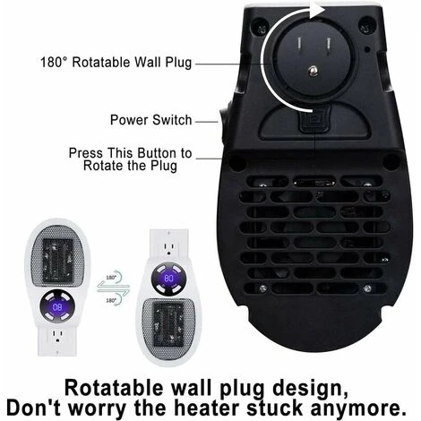 【180° Rotatable Plug】The fan heaters for home can be rotated 180° to fit the outlets in your home. different conditions and positions. If your outlet is upside down, simply rotate the plug to fit the outlet.