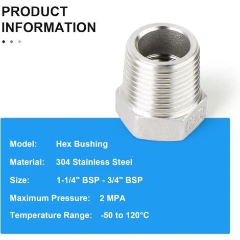 Size: 1-1/4 male to 3/4 female BSP connectors.