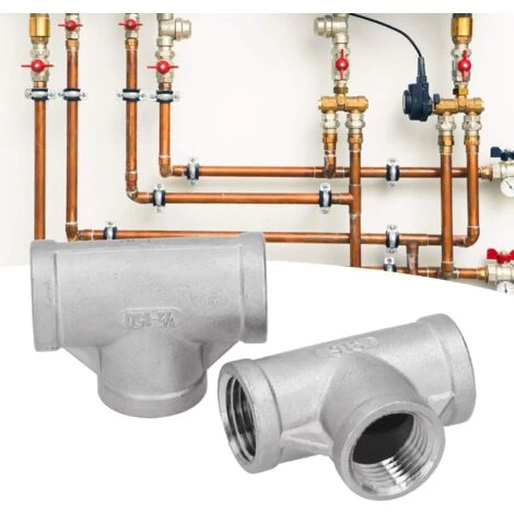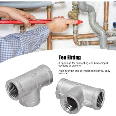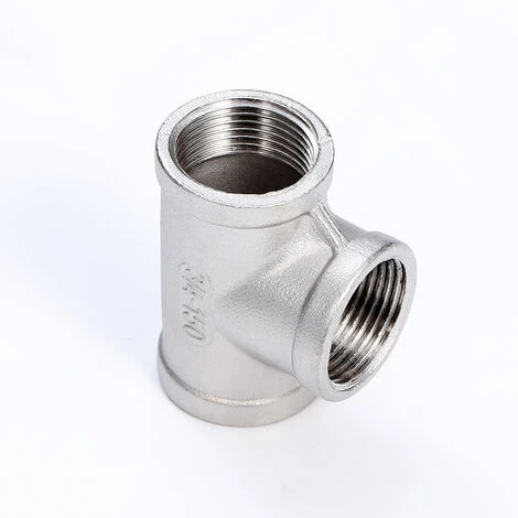 1/2 NPT tee with three openings for connecting and branching three sections of pipeline.