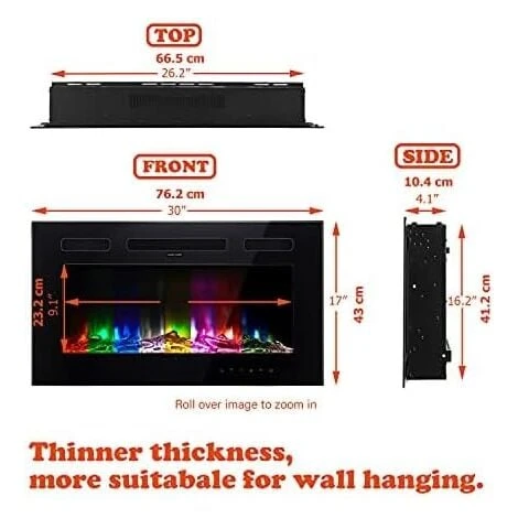 - 🔥【Attractive and Practical Design】 30L x 17H x4.1 W, The thickness of the upgraded electric fireplace is reduced to 4.1 inch and won’t be obtrusive on the wall. And it opearates the same as the old one.In front of electric fireplace, we add two air inlets to ensure fast incoming air.