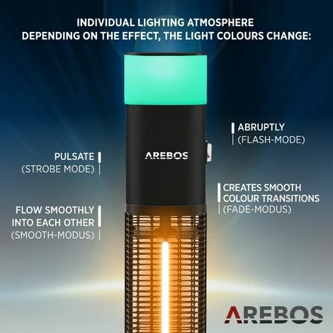 With the AREBOS LED radiant heater you can choose between 16 different colors and find the right color for every occasion and mood.