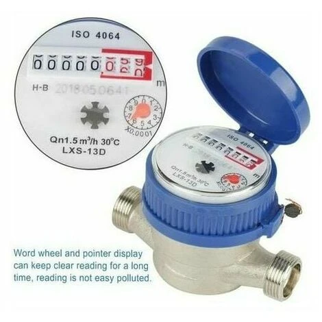 br/> Wide measuring range – Nominal flow rate is 1.5; the transition flux is 0.12; the minimum flow is 0.03; lowest index: 0.0001. The measuring range is wide and the starting flow is small. Good metering system – Meter with all rotation function, which is convenient for meter reading. The meter system uses a vacuum seal to prevent condensation from vaporizing. Easy installation and clear readings – Water meter can be mounted vertically or horizontally . The word wheel and the pointer display can continue to read clearly for a long time, and the reading is not easy to pollute. Small and beautiful – The water meter is beautiful, small and space saving.