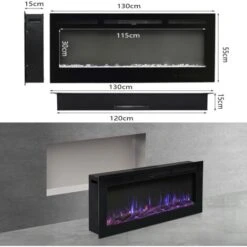 Livingandhome 50 Inch LED Electric Fireplace Wall Mounted Wall Insert Heater 9 Flame Colours