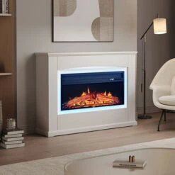 Livingandhome Electric Fireplace Insert Wall Mounted Freestanding Heater With LED Surround