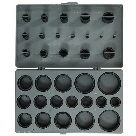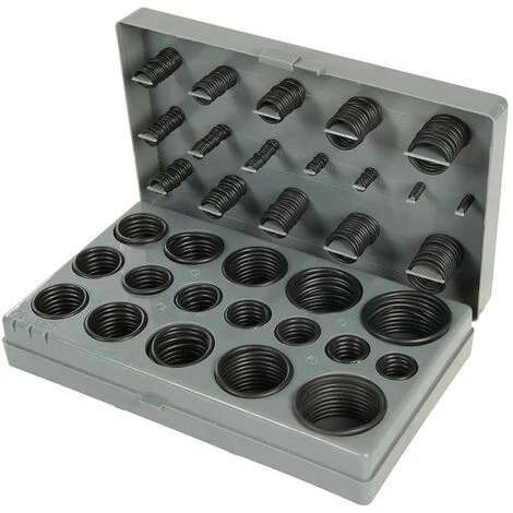 Rubber O rings for sealing gaps between two surfaces. Use to create air and watertight seal between materials or objects. Multiple applications from plumbing to watch repair. Includes assorted sizes 6 to 57mm. Handy storage case with compartments.