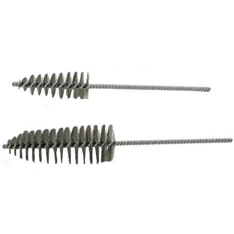 Tower helically brush in nylon shorter to pass to 45° bends, used for cleaning stainless steel pellet chimneys of stoves and boilers, and will not line and ruin the inner section of the flues.