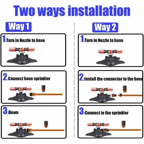 2.【Easy to use and quick to install】 Simply connect the water connection to the connector and to the tap. When you turn on the tap, the garden sprinkler will start spraying. Sprinklers can also be connected in series using another interface.Tandem mode is suitable for large lawns.