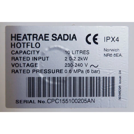 Heatrae Sadia – 2.2KW Hotflo 10 Litre Water Heater 50148