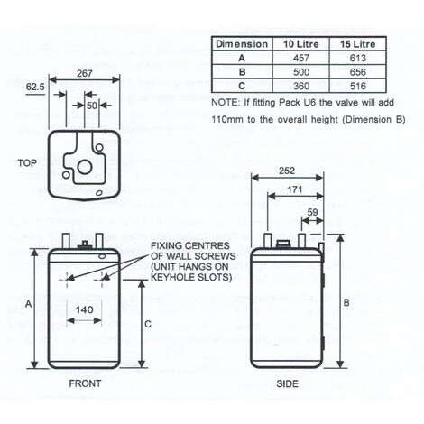 - Available in 10 litre (suitable for up to two basins) and 15 litre (suitable for up to three basins) capacities.*