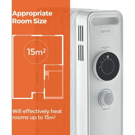 Igenix Oil Filled Radiator, 1.5kW/1500W, Overheat Protection, White – IG2615