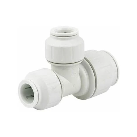 A 15mm push-fit to 10mm push-fit to 10mm push-fit Reducing tee connector from the John Guest PEM range. Meeting the requirements of the US FDA, WRAS, ANSI/NSF-51, 61