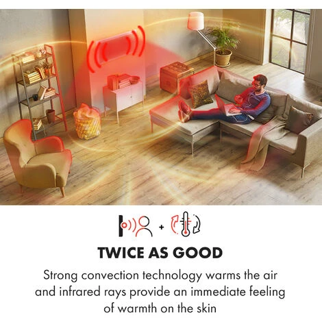 Twice as good: strong convection technology warms the air and infrared rays create an immediate feeling of warmth on the skin