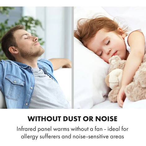 CLEAN, QUIET, NATURAL: With a gentle heat that warms up instantly, this infrared panel heater is incredibly clean and does not emit CO2 nor create obtrusive noise. In addition to being quiet, it’s odour-free, making it ideal for those with allergies.