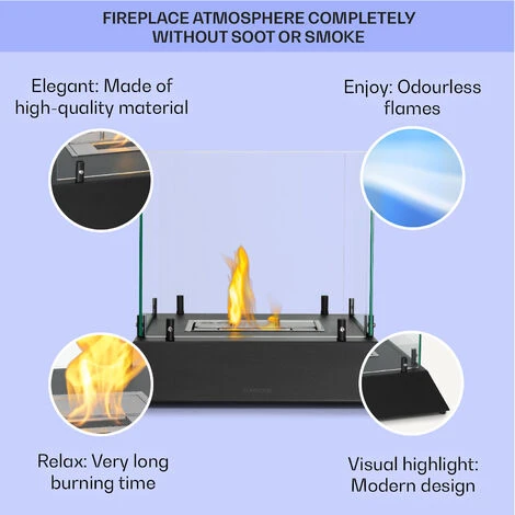 HEATING WITHOUT SMELLS & SMOKE: Enjoy real flames that are free from smoke, odours and dangerous chemicals. By creating a real flame without fumes or ash, the bioethanol fireplace warms you with needing a chimney, vent or costly home alterations.