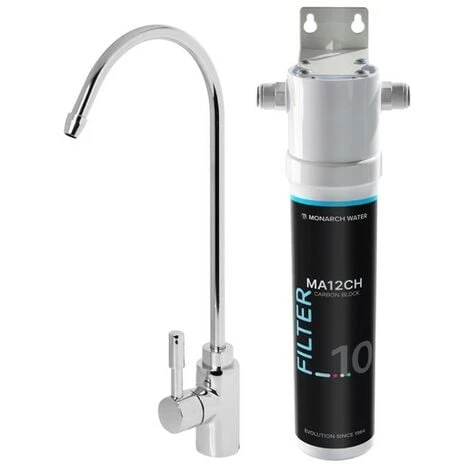 A compact water filter system with easy change auto-shut off cartridges. The filter significantly reduces bad tastes, odours and impurities such as chlorine, organic chemicals, herbicides and pesticides.Â