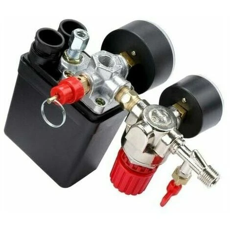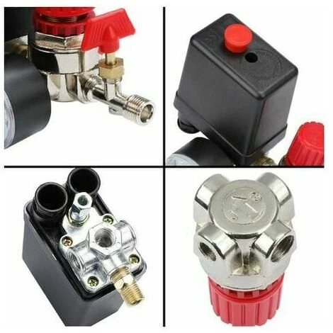 Structure: Air compressor pressure valve with 1/4″ outlet safety valve with 2 gauges. With on/off switch. The piston seal adopts V-type seal, good sealing, wear-resistant and stable. Advantage: Piston structure, the flow rate is 30% higher than that of traditional diaphragm type. Operation: The valve body structure has an overflow port, for rapid pressure reduction. Performance: The air compressor pressure valve switch provides high precision and quick response. Feature: The air compressor pressure valve switch is small in size, light in weight and easy to install. Product Description Air Compressor Control Valve Regulator with Gauges for Quick Pressure Reduction The main function of this valve is to regulate the shut-in and start-up pressure of the air compressor. Features: Helps you save electric energy of air compressor. High precision voltage regulation and sensitive reaction. With on/off lever. Users can adjust according to their actual situation. Easy to install and use. Specifications: Materials: metal + plastic. Maximum voltage: 240 V. Maximum current: 20 A. Pressure switch control range: 90 to 120 psi. Connector: G1/4 Gauge diameter: G1/8. Applicable pressure range: 0.5-0.8 MPA. Maximum flow: 3000L/min Contents: 1 air compressor pressure switch.