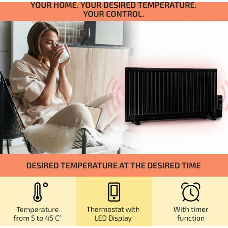 BRING WARMTH AND ELEGANCE INTO YOUR HOME: Our indoor oil radiators create cuddly feelings and a cosy warmth for slipper and pyjama wearers. The oneConcept 1000W low energy convector heater ensures an even distribution of heated air in any room.