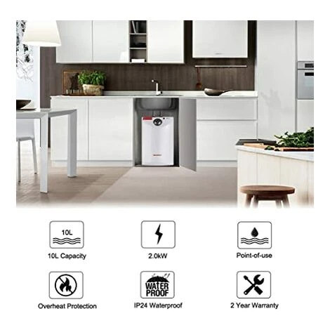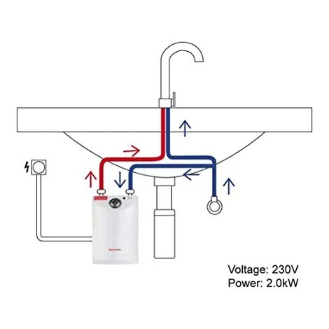 - Two applications optional – Functional for both over sink and under sink installation, display will reverse automatically. Act as primary heater, with water being injected from cold mains directly; Act as booster heater, with hot water being injected from a storage tank. It is free to connect to a mixer tap.