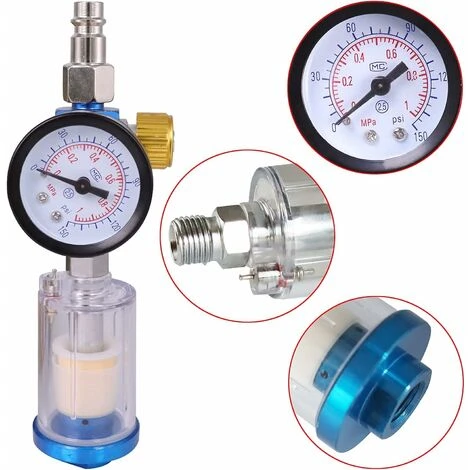 - Filter Regulator: This is a set of filters for use with air guns and spray guns. Standard 1/4″” thread fits most spray guns and air guns.