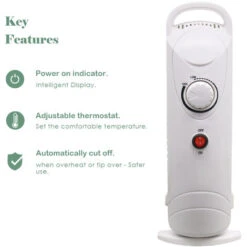 Oil Filled Radiator Portable Electric Heater Thermostat Mini 6 Fin 800W White