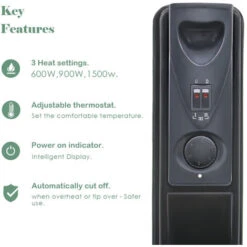 Portable Oil Filled Radiator Electric Heater Thermostat 7 Fin 1500W Gloss Black