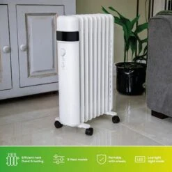 White Oil Filled Radiator Portable Electric Heater Thermostat 9 Fin 2000W With Timer
