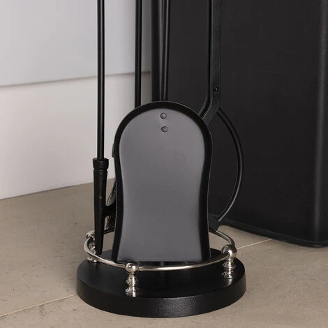 Relaxdays 4-Piece Fireplace Companion Tool Set Shovel, Brush , Poker & Holder, Modern Design, Black