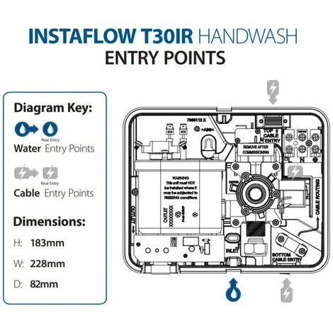 A compact unit, T30IR is perfect for fitting into small spaces and providing a source for instant hot water where only a cold mains water supply is available. Ideal for a cloakroom, toilet with no hot water supply, utility room or commercial environment such as a workshop or garage