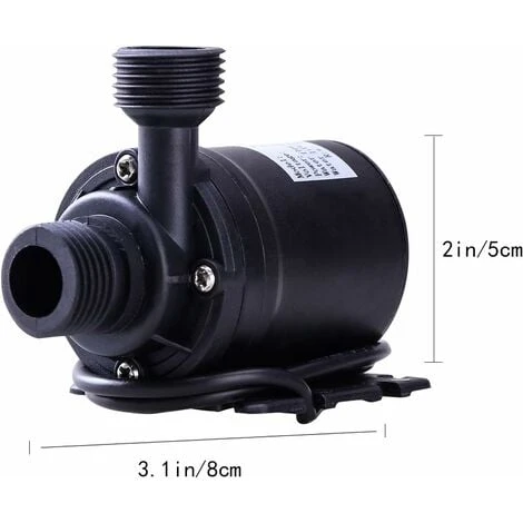 About this itemApply brushless DC motor, can work without sparking.Stable and reliable operation, low power consumption.Submersible and fully waterproof installation. Low noise.Fit for fountain, swimming pool, fish tank, fish tank, solar circulation system, water circulation system.Size: approx. 8 x 7 x 4cm / 3.15 x 2.8 x 1.6 inch (LxWxH).Product DescriptionDescriptionThis item is manufactured with premium material for durable and long lasting use. It is easy to use and install with long service life. With high performance, it is suitable for fountain, swimming pool, aquarium, fish tank, solar circulation system, water circulation system. Features- Black color.- Material: plastic.- Size: approx. 8 x 7 x 4cm / 3.15 x 2.8 x 1.6 inches (LxWxH).- Voltage: DC 12V.- Electric current: 920 mA.- Power: 19W.- MAX flow: 800L/H.- MAX lifting height: 5m .- Inlet diameter: 16mm.- Outlet diameter: 12mm.- Noise: less than 35dB.- Fluid temperature: 0-60 degrees Celsius.- Apply brushless DC motor, can work without sparks .- Stable and reliable operation, low power consumption.- Submersible and fully waterproof installation. Low noise.- Suitable for fountain, swimming pool, aquarium, fish tank, solar circulation system, water circulation system. Fountain pool solar circulation