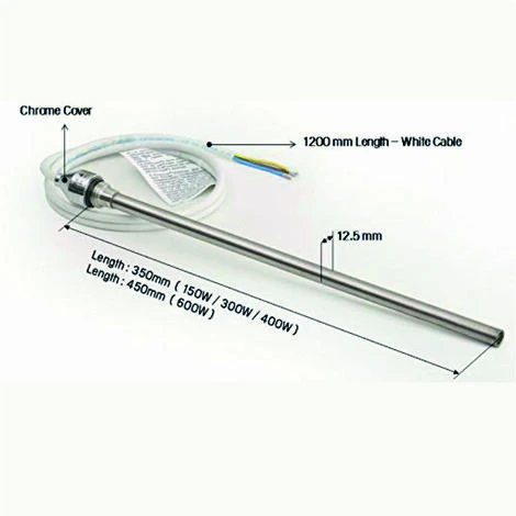 This product is available in 150W – 200W – 250W -300W – 400W and 600W, Please select suitable one according to your towel rail dimensions.