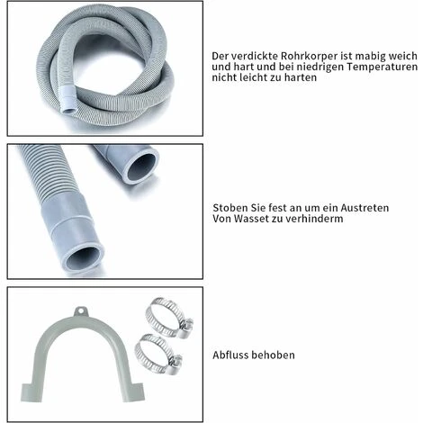 – The high-quality plastic hose drain hose extension is 2 meters long for flexible positioning of your washing machine.