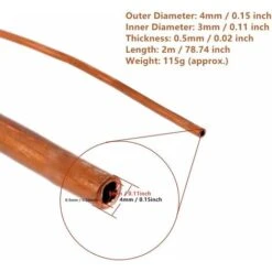 2M Soft Copper Tube OD 4mm X ID 3mm Pipe Roll For Refrigeration Plumbing (OD 4mm, ID 3mm)