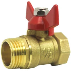Full Bore Brass Ball Valve, Male X Female Threaded Connection, With Butterfly Handle